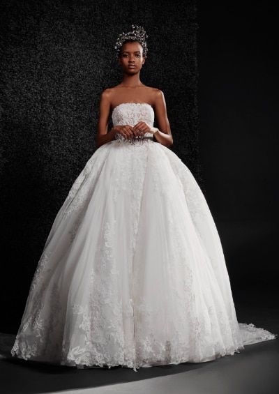今回新たに加わるのは、モダンなスタイルからトレンドスタイルまでミニマリストのブライダルパーティのために制作されたウエディングドレス。VERA WANGの特長である、柔らかで繊細なチュールを施したドレーピングはじめ、キャップスリーブにトレンドのイリュージョンバッグを組み合わせたデザインや、ドレスの内側にもフローラルレースを施した奥行のあるスタイルなど、どれもVERA WANG BRIDEでしか表現できないスタイルです。