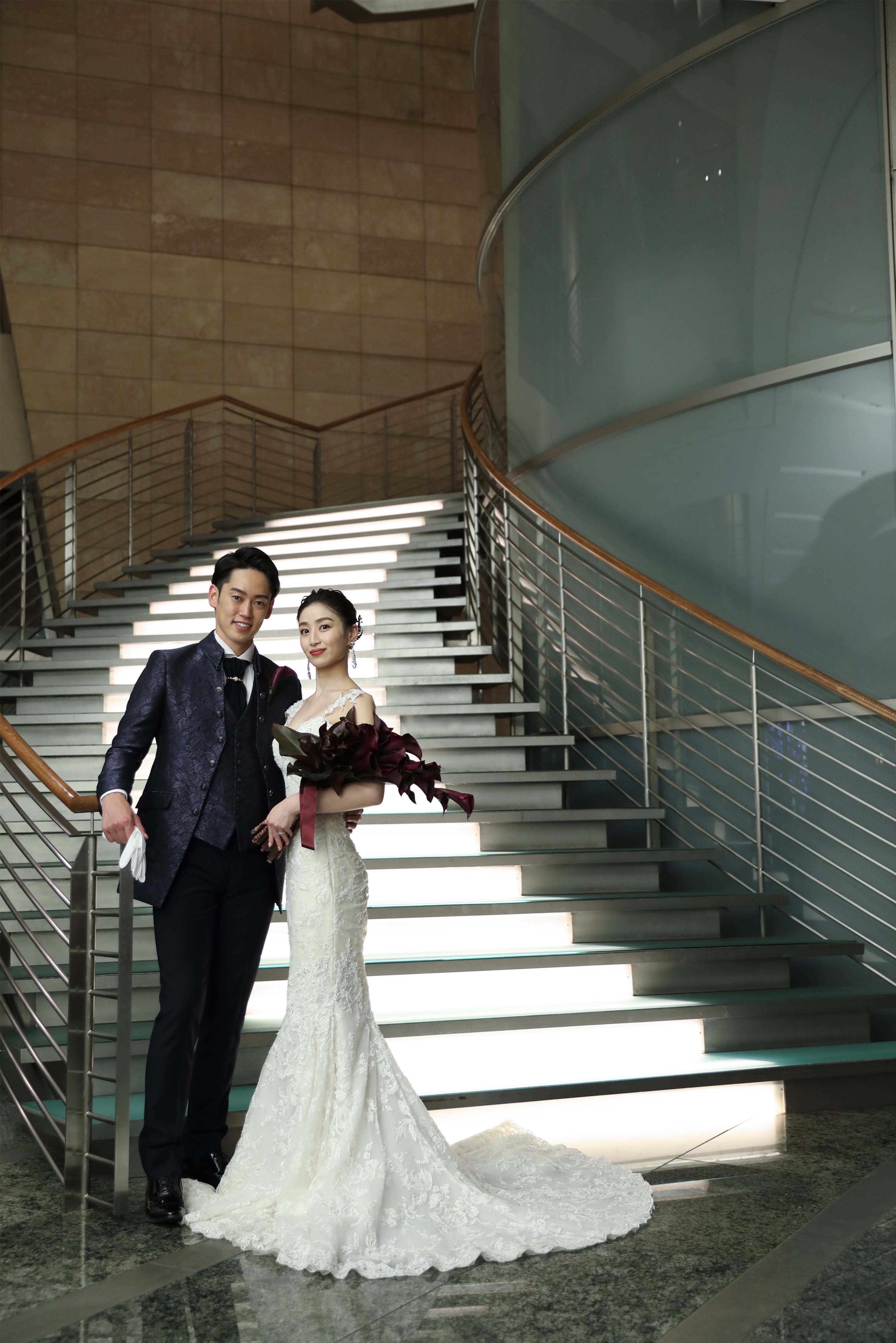 「ふたりでレッドカーペットを歩くように、挙式や披露宴ではモデルになりきって歩こうと。そのために、ウォーキングの先生に指導いただいて、歩き方や姿勢、動作のスピード、グラスの持ち方など、きれいな立ち居振る舞いを習いました。挙式ではつい緊張して速く歩いてしまうので、事前に教えていただけてよかったです。それでもチャペルに入場する時だけは緊張してロボットみたいになってしまいましたが……」(hirotakaさん)