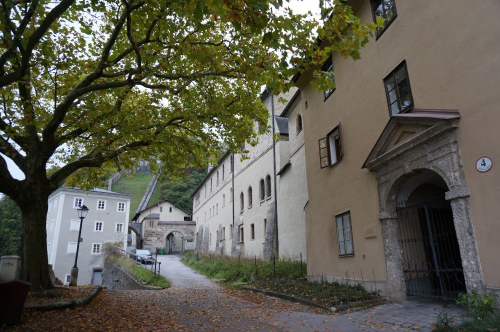 8世紀ごろに建設された修道院で、市街にそびえる岩山の頂上に鎮座するホーエンザルツブルク城に行く途中にあります。道の途中からはザルツブルク市街を一望できるポイントがあり、そちらも映画のなかでマリアと子どもたちが歌いながらきゃっきゃあははと通り過ぎていくシーンがあります。